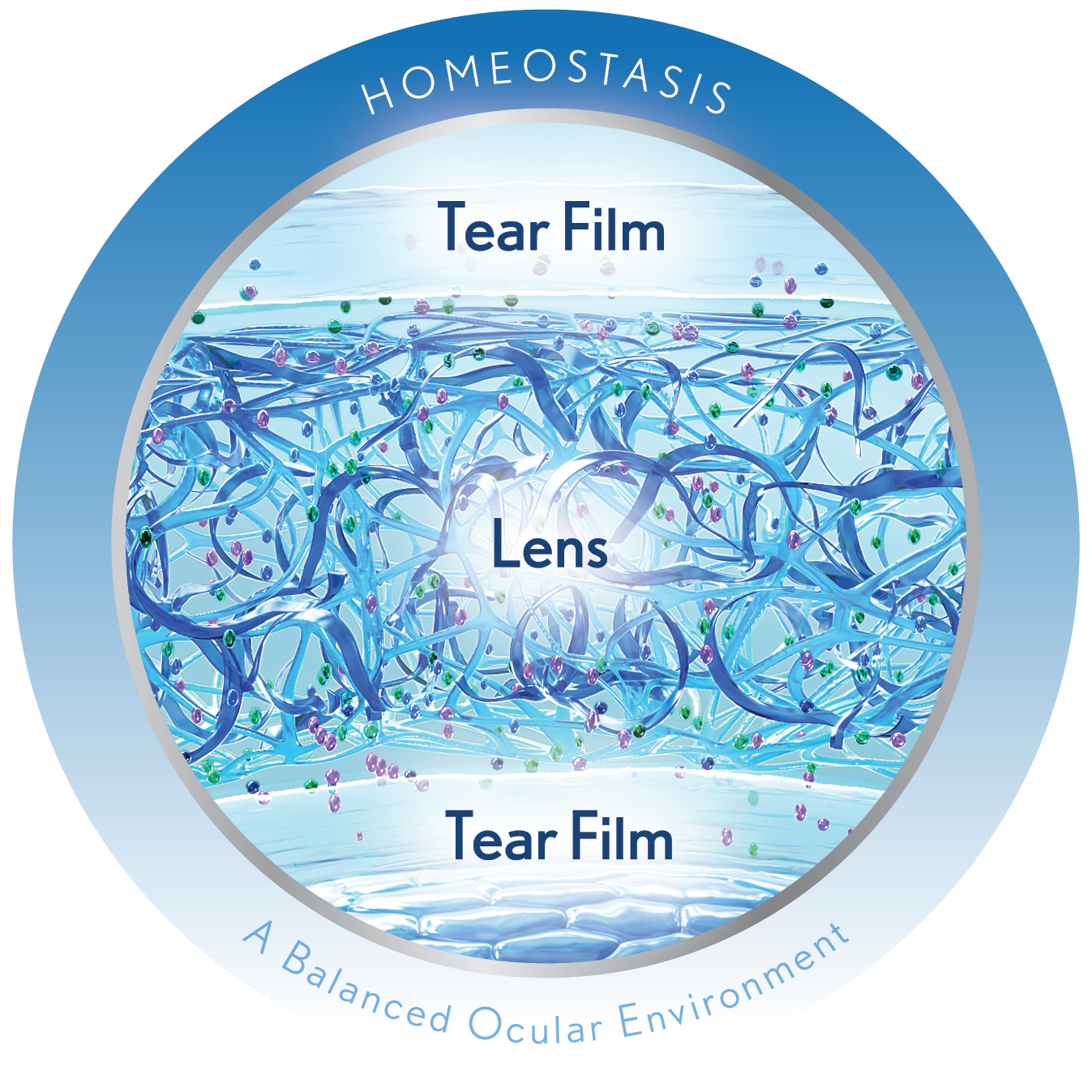 The only contact lens with two breakthrough technologies working in synergy with the tear film as a complete system to help maintain ocular surface homeostasis and deliver outstanding comfort for 16 hours of wear3-5